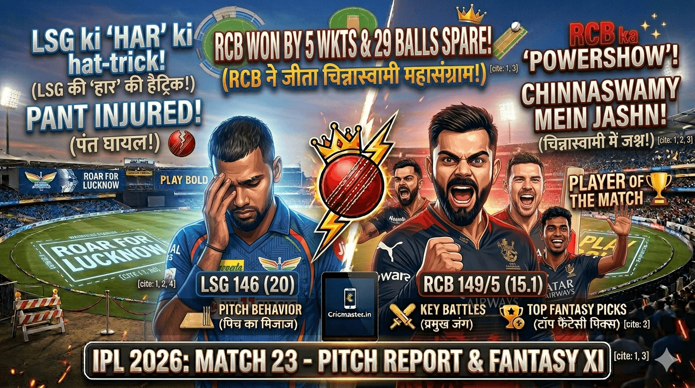 RCB vs LSG Match Result 2026: लखनऊ के खिलाफ 147 रनों के छोटे लक्ष्य का पीछा करते हुए आरसीबी को एक ऐसी शुरुआत की दरकार थी जो मैच को पावरप्ले में ही खत्म कर दे। विराट कोहली ने ठीक वही किया। RCB won by 5 wickets LSG 146 (20.0) vs RCB 149/5 (15.1) 🏆 Player … Read more