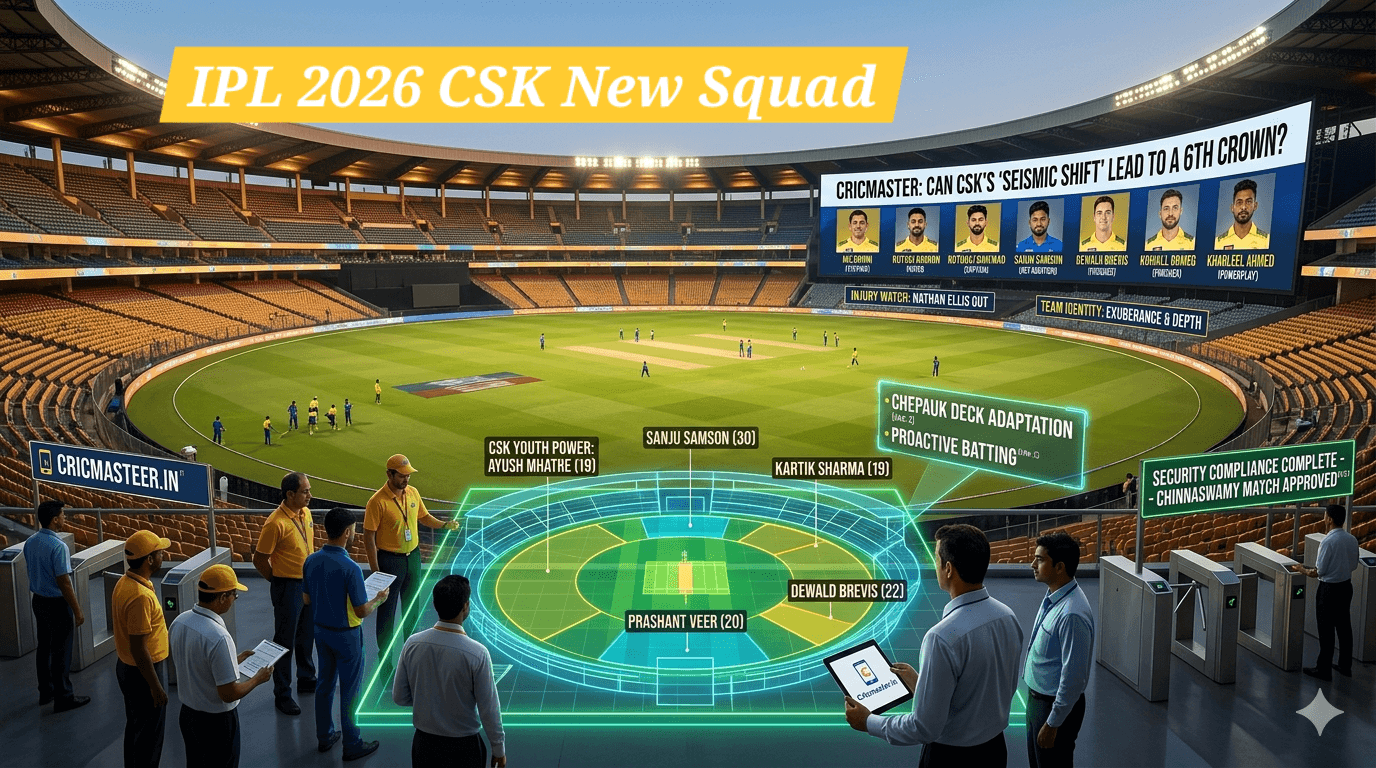 IPL 2026 CSK New Squad चेन्नई: आईपीएल के इतिहास में जब भी सबसे सफल टीमों की बात होती है, तो चेन्नई सुपर किंग्स (CSK) का नाम सबसे ऊपर आता है। लेकिन 2026 का सीजन कुछ अलग है। यह वह CSK नहीं है जिसे हम ‘डैड्स आर्मी’ (अनुभवी खिलाड़ियों की टीम) कहते थे। इस बार धोनी के मार्गदर्शन में ऋतुराज गायकवाड़ एक ऐसी टीम लेकर उतर रहे हैं, जो जोश और जवानी से लबरेज है।