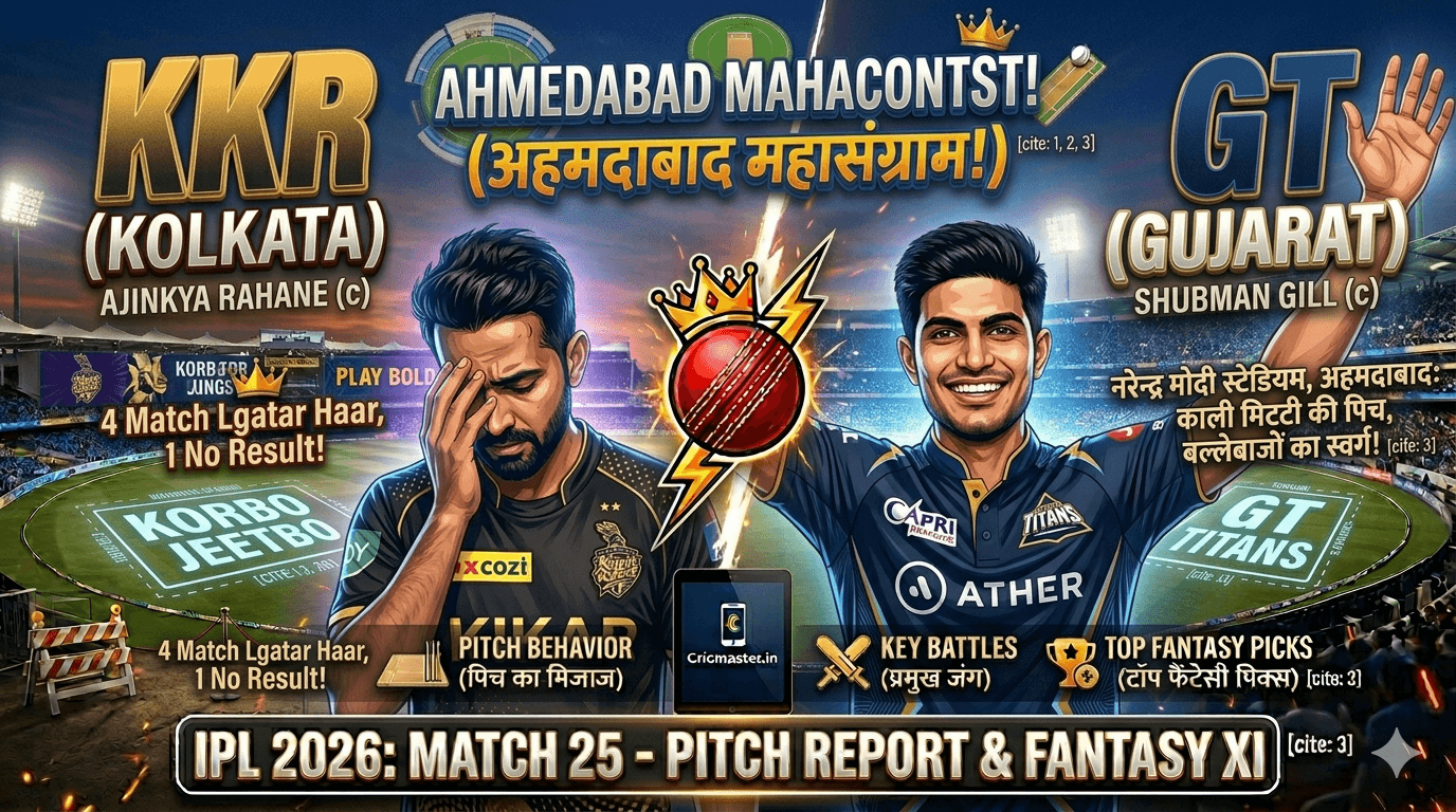 - खास बात: केकेआर के फैंस को आज भी रिंकू सिंह के वो 5 छक्के याद होंगे जो उन्होंने इसी मैदान पर गुजरात के खिलाफ लगाए थे। क्या आज फिर वैसा ही करिश्मा होगा?
