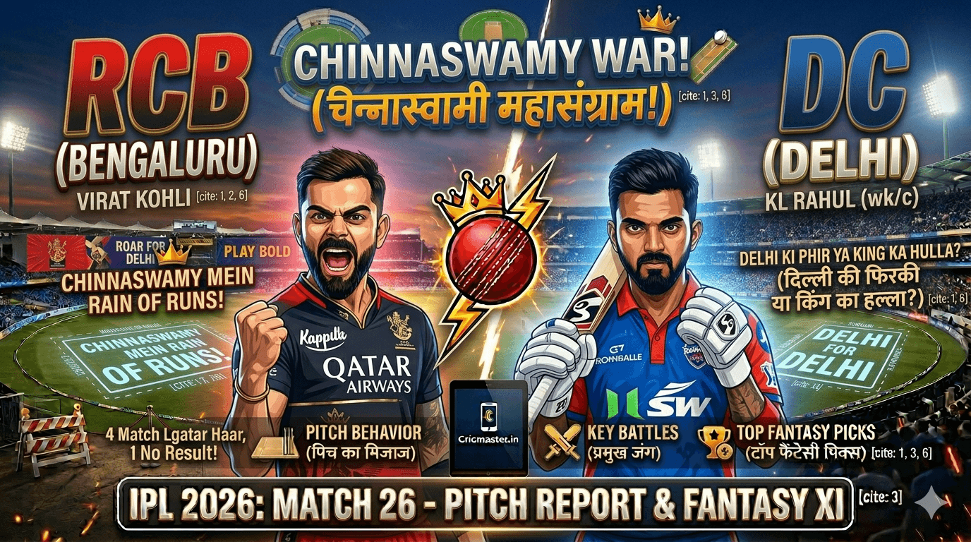 1 thought on “RCB vs DC Today Match IPL 2026: चिन्नास्वामी में फिर मचेगा ‘किंग’ कोहली का शोर या दिल्ली की फिरकी में फँसेंगे चैंपियंस? जानें पिच रिपोर्ट और आज की भविष्यवाणी!”