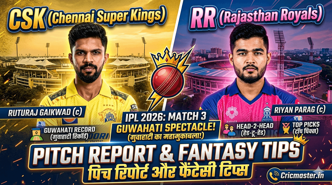 IPL 2026, Match 3: संजू सैमसन ‘पीली जर्सी’ में! गुवाहाटी में आज होगा रनों का धमाका, जानें पिच रिपोर्ट और CSK की नई Playing XI